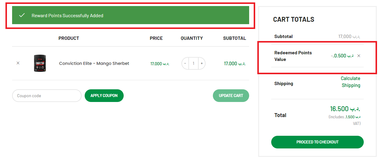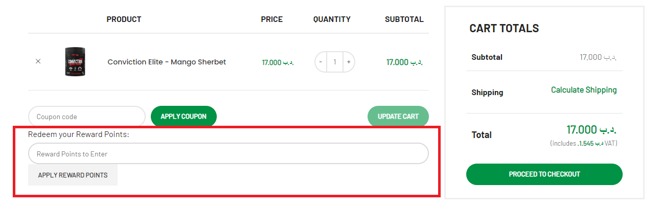 For every points you collect, you’ll get 100 Fils off your next purchase! Simply select ‘Redeem your Rewards Points’ at cart page to apply your discount.